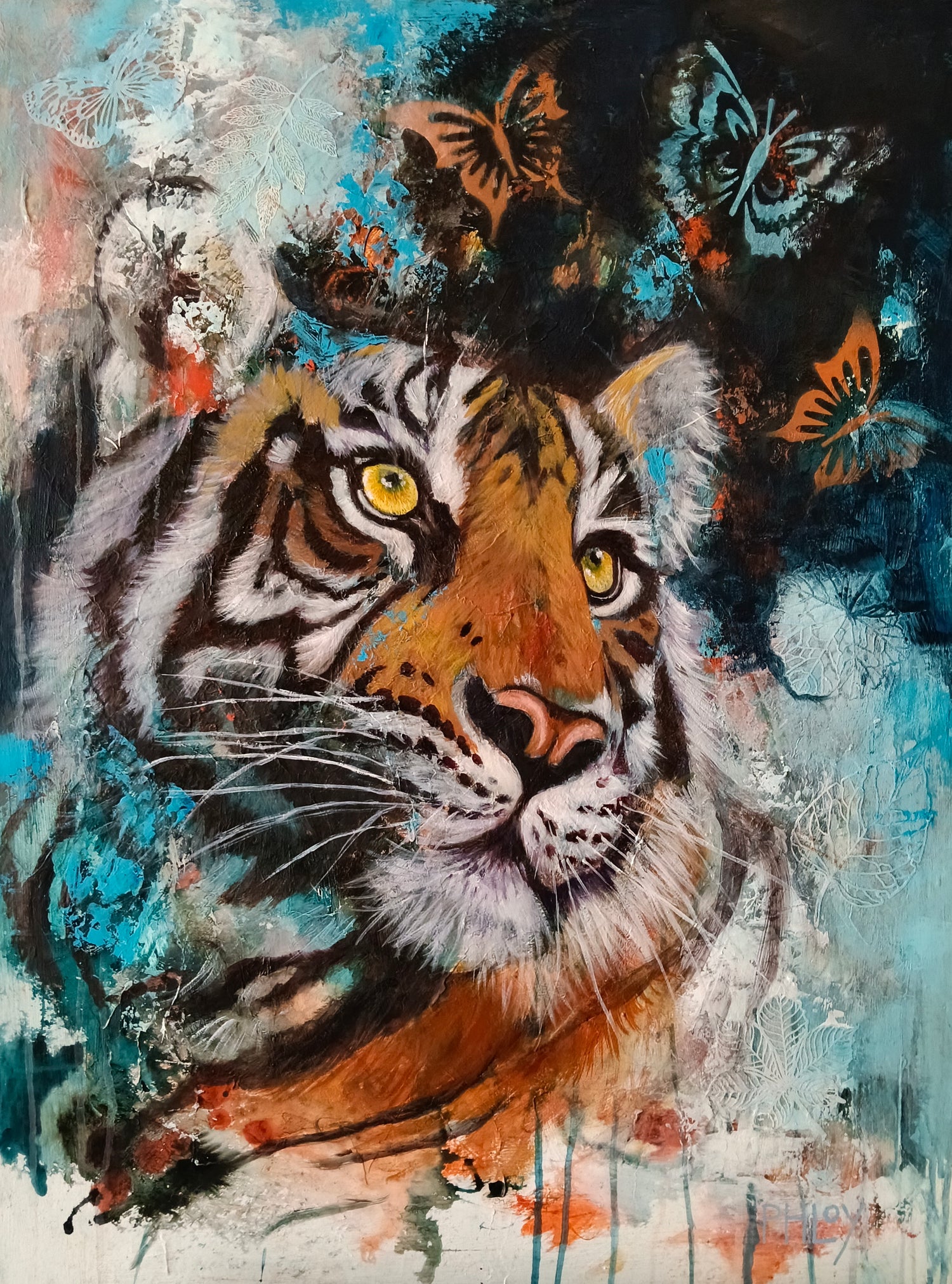 In het geval van het schilderij met de papegaaien, staat deze prachtige kleurrijke vogel voor overlevingskracht en aanpassingsvermogen.